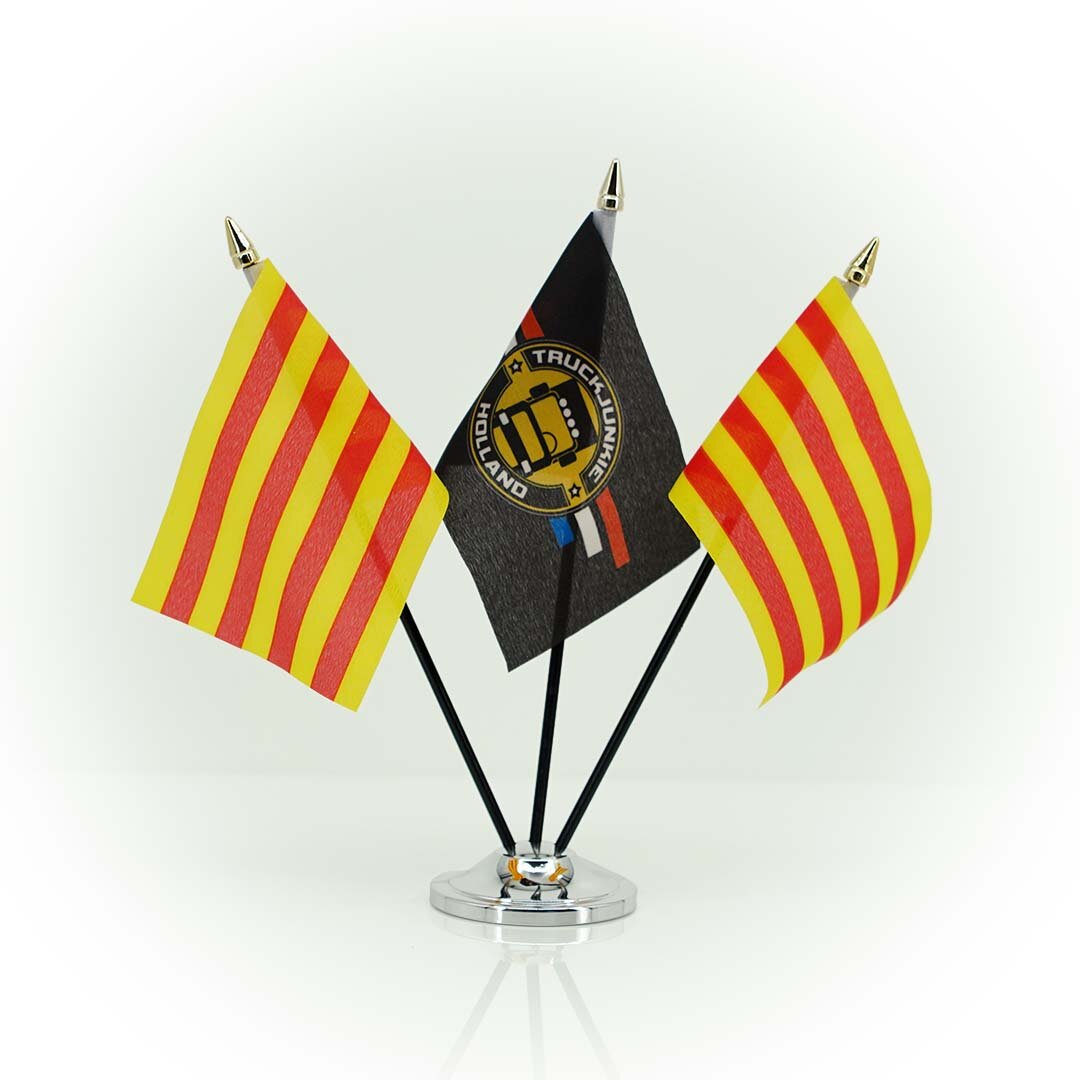 FLAG-CAT-flaget er designet til lastbilstyling og giver et stilfuldt udseende. Flaget måler 10 x 15 cm og er udstyret med en sort plaststander med en guldfarvet mastetop. Denne kombination sikrer en elegant og holdbar finish. Ideel til brug i kabinen, giver det en kompakt og iøjnefaldende dekoration.
