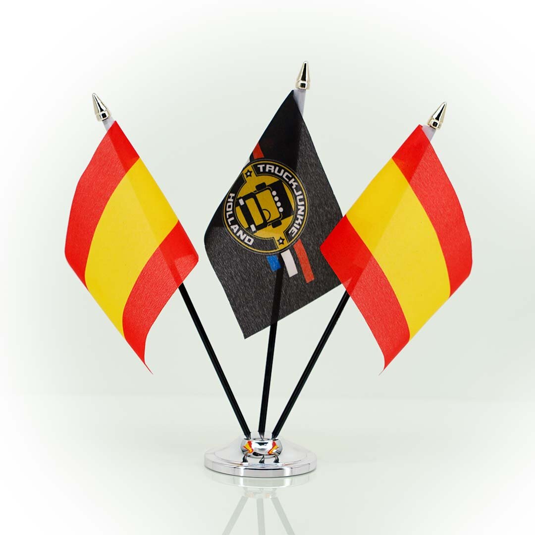 FLAG-ES flag er en kompakt og stilfuld tilføjelse til enhver lastbil. Med en størrelse på 10 x 15 cm passer dette flag perfekt på dit køretøj. Flaget er udstyret med en sort plaststander, der sikrer stabilitet og holdbarhed. Den guldfarvede mastetop tilføjer et strejf af elegance til helheden.