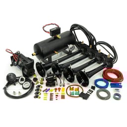 Oplev Hornblasters Toghornkit 12V Conductor's Special 244 ShockerXL, et komplet sæt, der sikrer kraftige lydsignaler. Dette kit er ideelt til lastbiler, pick-ups, 4x4'er, varevogne og gravemaskiner. Med den medfølgende kompressor, lufttank, ventiler og ShockerXL horn er du sikret en imponerende lyd.