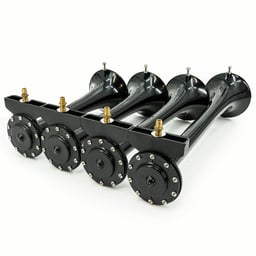 Hornblasters Toghornkit 12V Conductor's Special 244 ShockerXL er et kraftfuldt hornkit til lastbiler. Dette kit indeholder en 12V kompressor og fire horn, der producerer en imponerende lyd. Installationen er enkel, og kittet er designet til holdbarhed. Fordele inkluderer øget sikkerhed og en iøjnefaldende tilstedeværelse på vejen. Hornenes dimensioner er kompakte, hvilket gør dem nemme at montere på forskellige køretøjer.