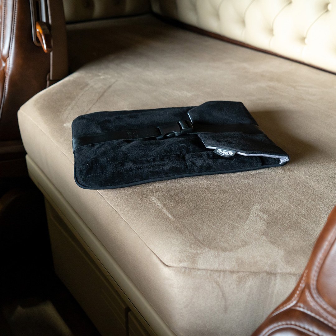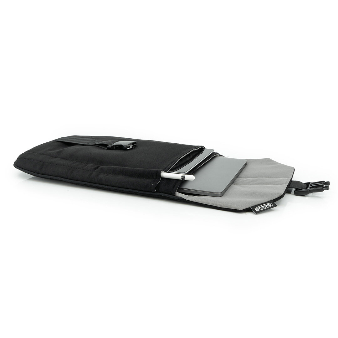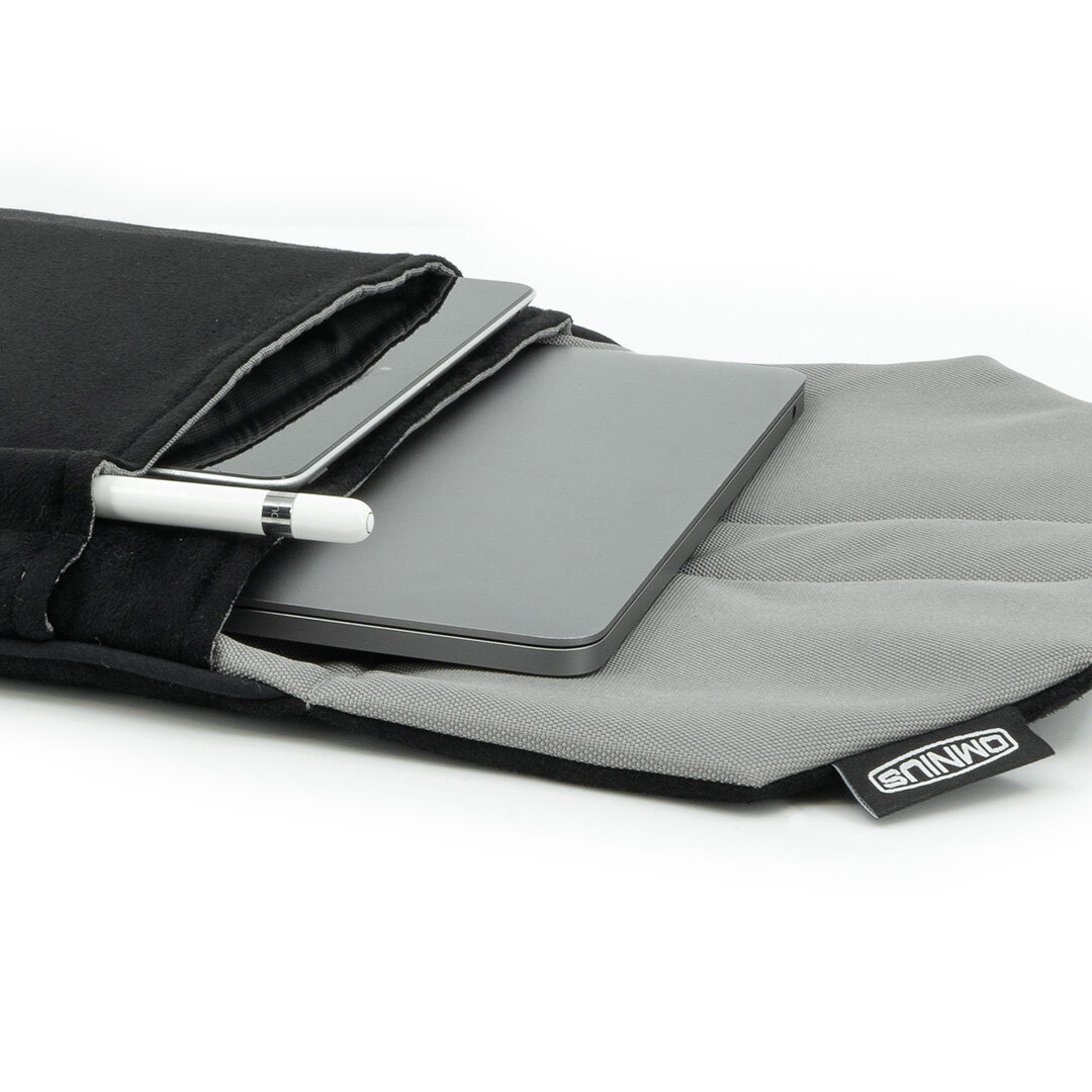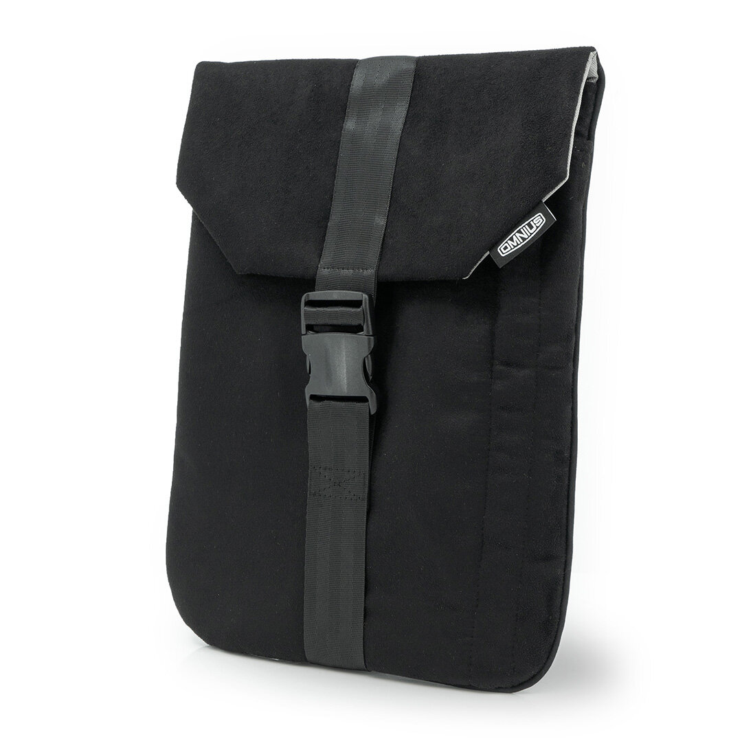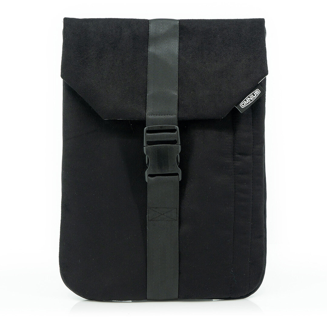 Omnius laptopstativet tilbyder en stilfuld beskyttelse til bærbare computere op til 14 tommer. Lavet af sort Alcantara-look materiale, kombinerer det holdbarhed med et luksuriøst udseende. Clipslukningen sikrer en sikker lukning. Fordelene er den stramme pasform og den lette vægt, hvilket gør det nemt at tage med. Dimensionerne er velegnede til de fleste standard bærbare computere.