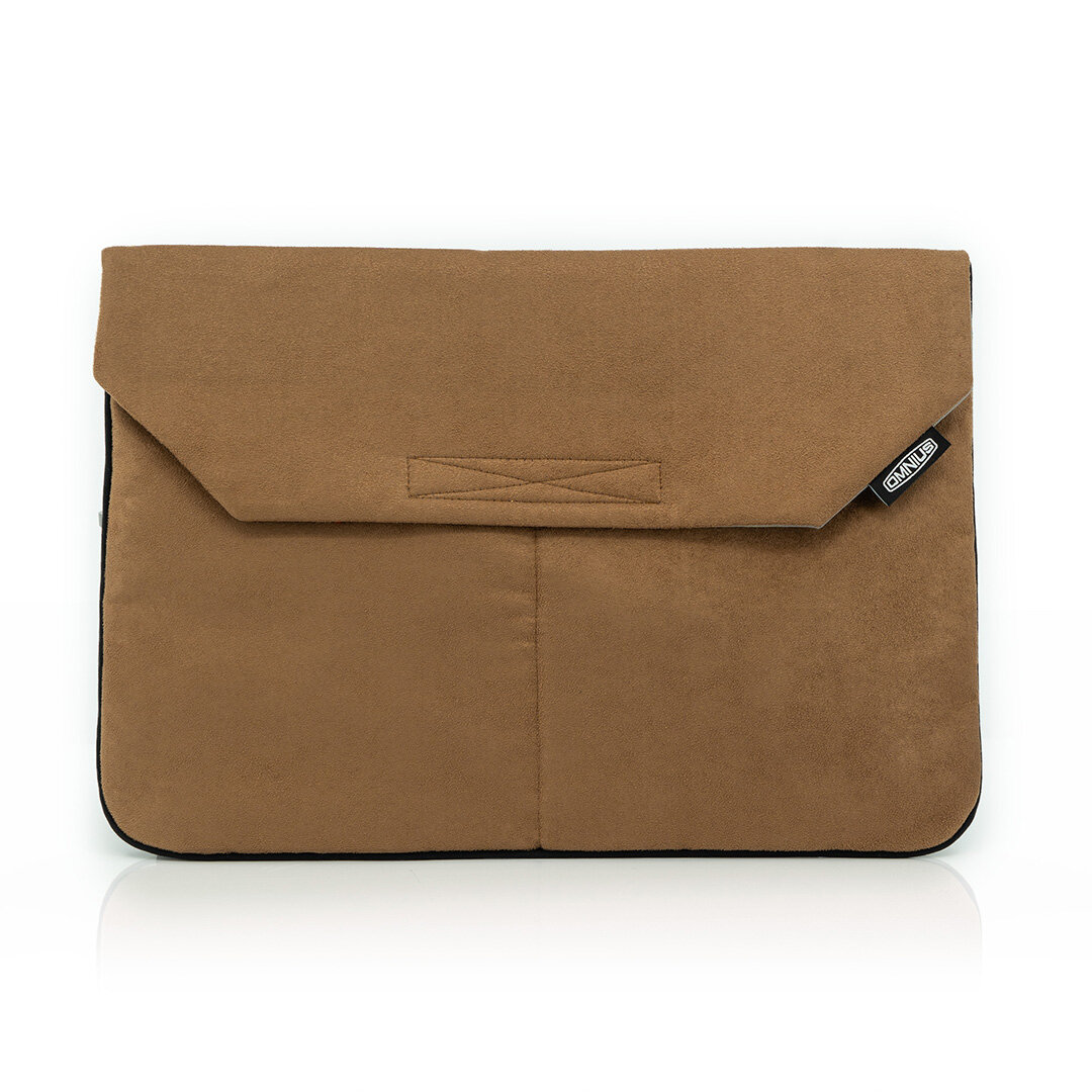 Beskyt din bærbare computer med den håndlavede Omnius bærbarholder. Dette etui er lavet af brunt alcantara-look materiale og har en praktisk velcrolukning. Etuiet er ikke kun stilfuldt, men også funktionelt med to praktiske forlommer. Det håndlavede design sikrer et unikt udseende og holdbarhed, ideelt til daglig brug.