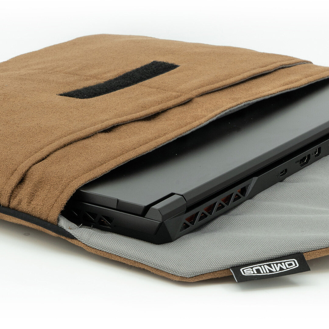 Omnius laptopstativet tilbyder en stilfuld beskyttelse til bærbare computere op til 16 tommer. Lavet af brunt alcantara-look materiale, har det en velcrolukning for nem brug. Etuiet er håndlavet, hvilket sikrer et unikt udseende og holdbarhed. Fordelene er den solide beskyttelse mod ridser og stød, mens den lette vægt sikrer bærekomfort. Dimensionerne er egnede til de fleste standard bærbare computere, og det særlige alcantara-look giver et luksuriøst udseende uden brug af ægte læder.