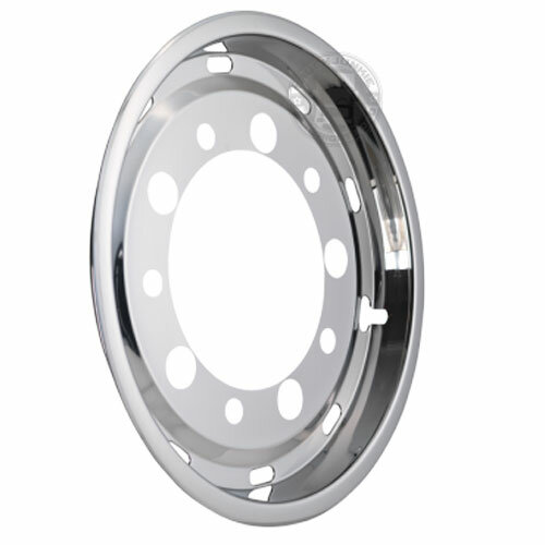 Der AMERICA/ALCOA Simulator Hinten ist eine Radabdeckung aus rostfreiem Stahl, die für 9.00" x 22.5" Felgen entworfen wurde. Sie bietet eine langlebige und pflegeleichte Lösung zur Verbesserung des Erscheinungsbildes von Lastwagen. Die Abdeckung schützt vor Schmutz und Korrosion, was die Lebensdauer der Felgen verlängert. Mit einer präzisen Passform und einfacher Installation ist sie eine praktische Wahl für Truckstyling. Abmessungen: 9.00" x 22.5".