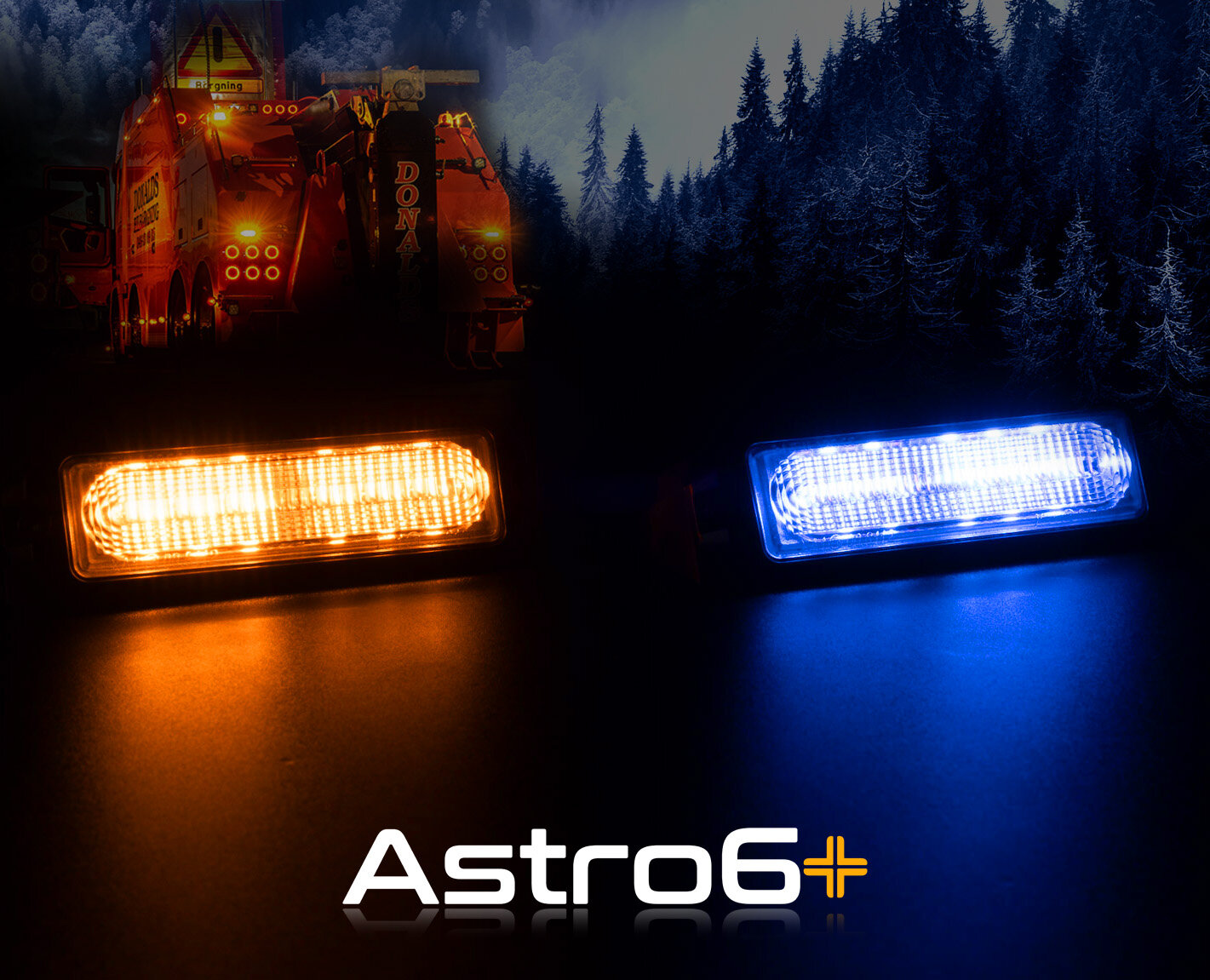 Astro6+ Warning Strobe Light Orange Blue 21 Strobe Patterns 12-24 Volt IP67 119x29x8 mm