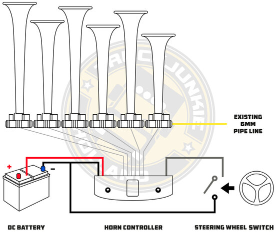 - Ensure a 5A fused power source and an air supply on the vehicle (not included).