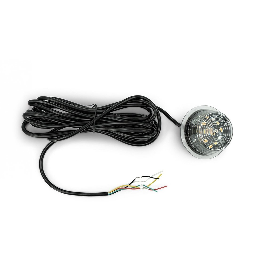 The Danish width lamp with smoked lens is a tough and versatile choice for your truck. This lamp allows you to easily switch between three colors: red, white, and amber. Additionally, the lamp has a turn signal function, providing extra visibility on the road.