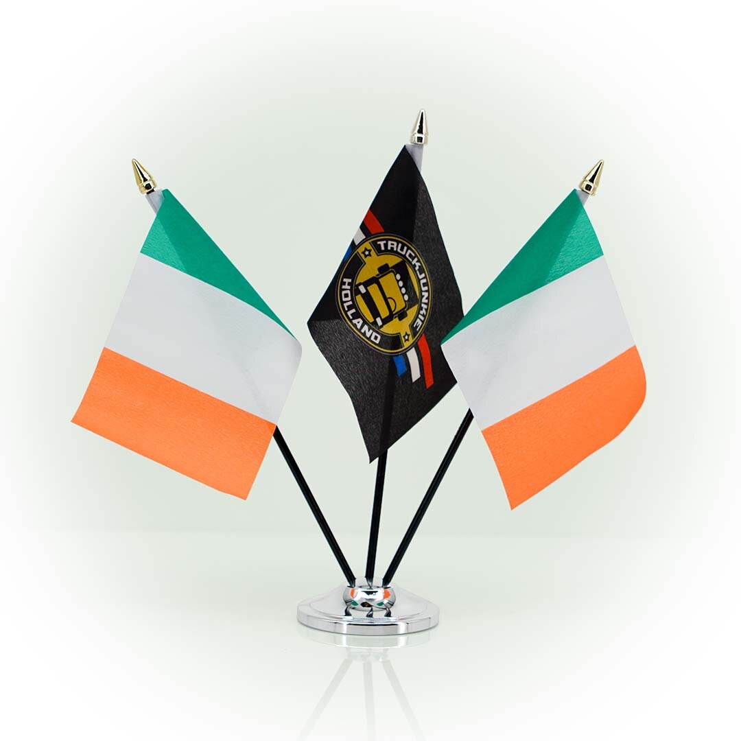 FLAG-IE Flag 10x15cm Black Plastic Stand Gold-colored Masthead
