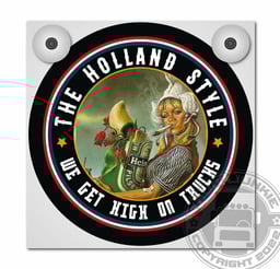 The HOLLAND STYLE High On Trucks Front Plate Set 18x18cm is a perfect choice for truck enthusiasts who want to personalize their vehicle. These light boxes combine style and functionality and are handmade in the Netherlands. They are known for their high-quality finish and excellent lighting.