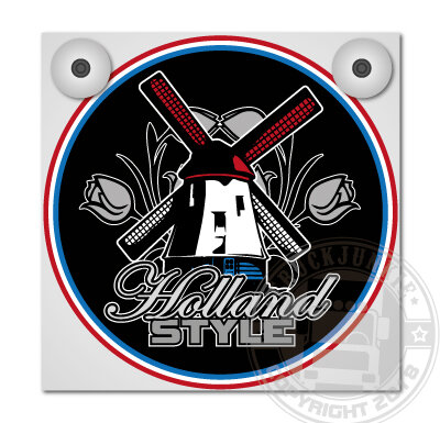 The HOLLAND STYLE Windmill Front Plate Set of 18x18 cm is a unique addition to your truck. These light boxes are handmade in the Netherlands and offer a combination of style and functionality. They come with suction cups, making them easy to attach.