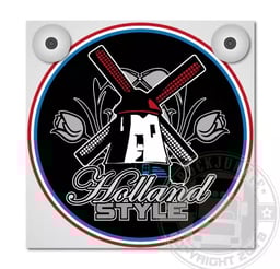 Holland Style Molenlichtbakje Deluxe Complete - 18x18cm - 24V OR 12V - LED (WARM WHITE) - STYLISHLY COVERED - INCL. 2m DOUBLE INSULATED CABLE - OWN PRODUCTION! Delivered without cigarette lighter. The highest quality, the best design, and the most beautiful light! Our light boxes set a new standard. Because the print is placed on the inside of the acrylic plate, it provides a very stylish illumination and gives a luxurious appearance with a gloss over the image. It has a full and even lighting over the entire image, unlike the cheaper versions that are only illuminated from the center. Standard delivery time: 1-2 WEEKS ! No warranty is given against burning out on the 12V version. The displayed logos and/or trademarks are for indication purposes only. They are not original and do not indicate that the product is made and/or approved by the brand owner. They only indicate that the product is suitable for a particular brand vehicle.