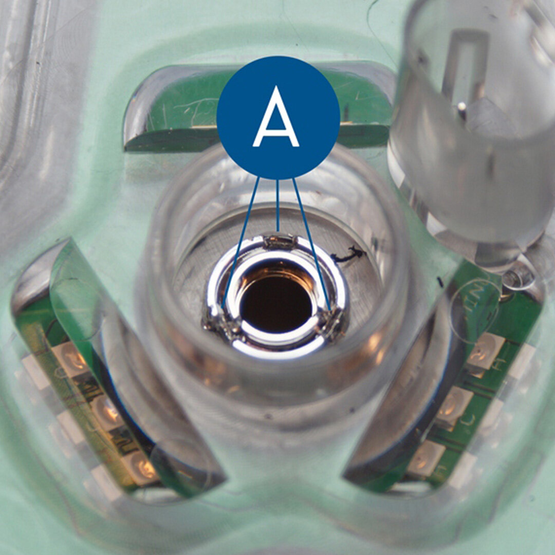 - Place the yellow emitter, remove old glue residues, and glue everything firmly back in place.