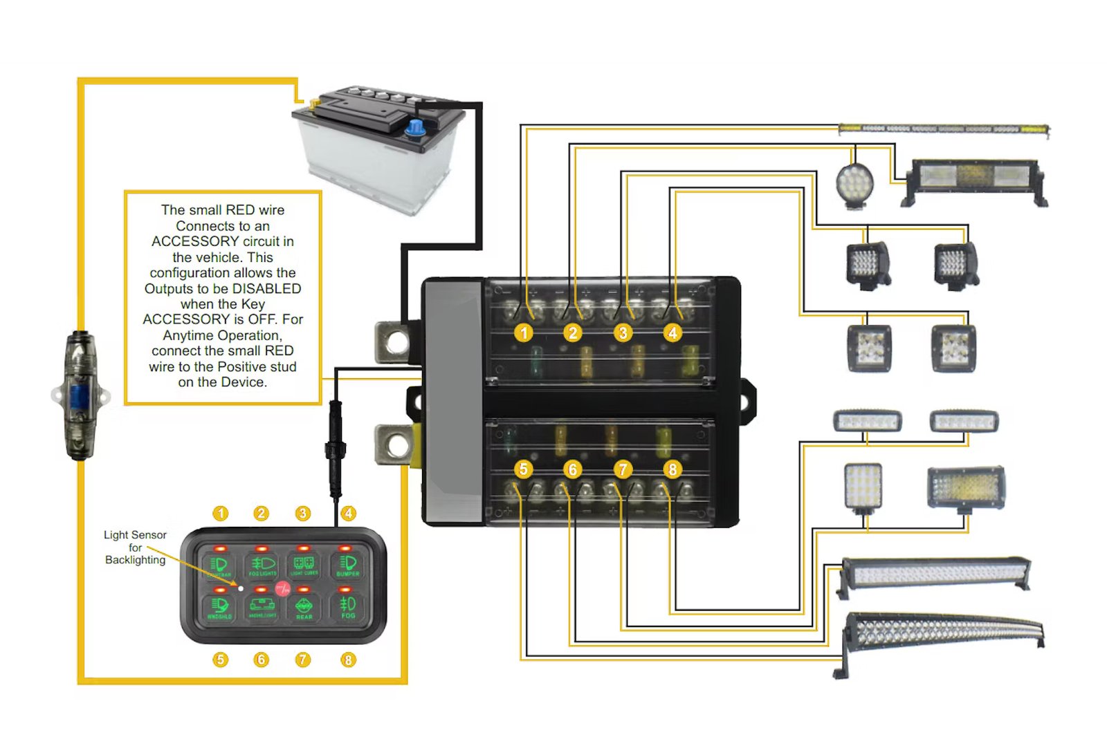 Switch Panel With Remote Control Via App 8 Switches Stylish Display Adjustable Flash Function IP65 Waterproof 12-24V 60A