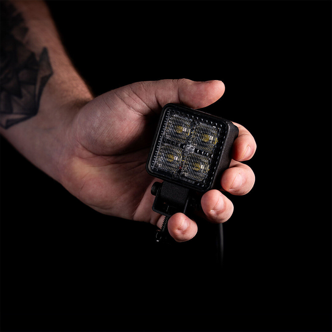 The Tiny work lamp is a compact and powerful solution for your lighting needs. With a wide 75° beam, this lamp is perfect for use in tight spaces. Its robust design and IP69K rating make the lamp water and dustproof, ensuring long-lasting reliability. This lamp is ECE-approved as a reversing light and is almost invisible due to its small size.