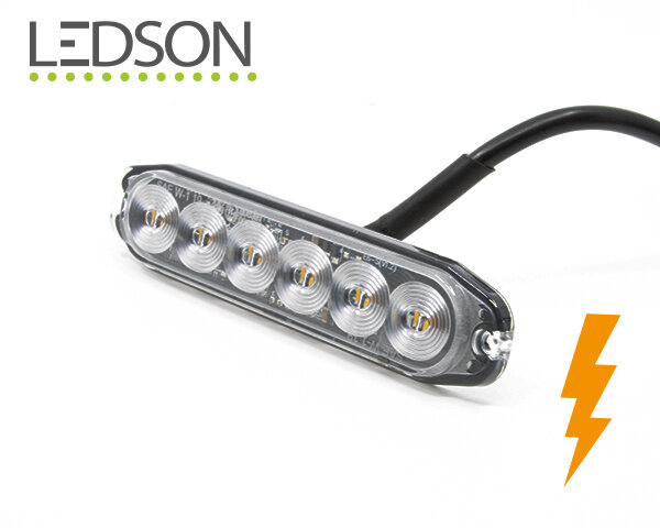 Ledson Warning Flash Lamp Surface Mount 7mm Multivolt 10-33V Shockproof IP68 6x3W LED 118x25x7mm