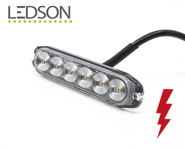 Ledson Warning Flash Lamp Surface Mount 7mm Multivolt 10-33V Shockproof IP68 6x3W LED 118x25x7mm