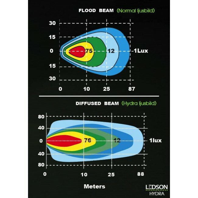The Ledson Hydra work lamp is specially designed for those who need a wide light pattern. With a unique three-step angle, this lamp offers a super wide and even light of 120 degrees. This is called a diffuse light pattern, meaning the width of the light is visible right from the start, unlike a floodlight that widens further away.