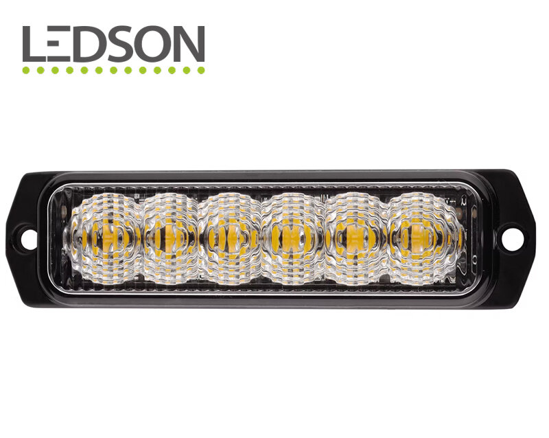Ledson Warning Flash Light Orange 6 LEDs ECE R65 EMC R10 SAE J595 IP67 9-33V 113x29x10mm 3m Cable