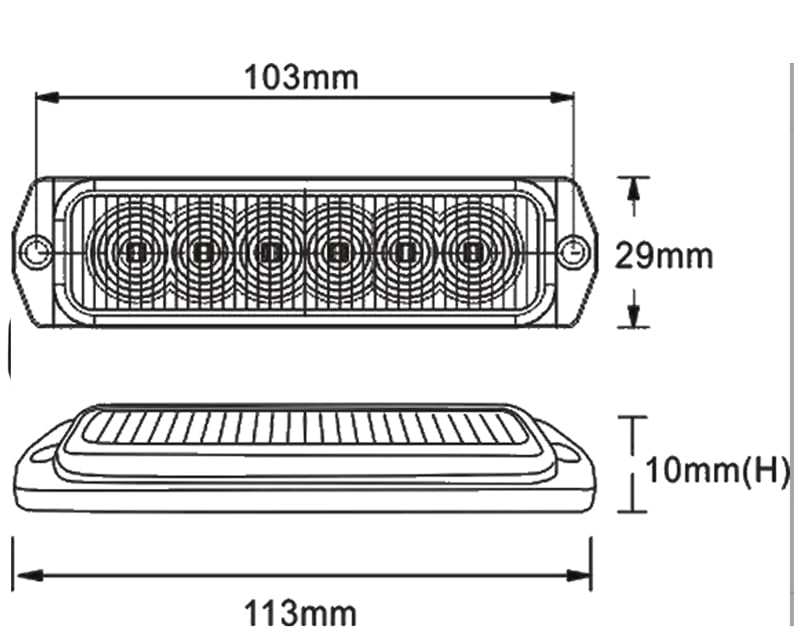 Ledson Warning Flash Lamp Surface Mount 7mm Multivolt 10-33V Shockproof IP68 6x3W LED 118x25x7mm