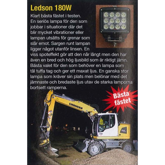 The Ledson Proteus Heavy Duty work lamp offers powerful lighting with 36x5W Osram LEDs, providing 12000 lumens. The lamp has a light dispersion of 90°, ensuring a wide and bright light beam. Advantages include the robust construction and efficient light output, ideal for tough conditions. Dimensions and features: compact design, easy to install, suitable for various applications.