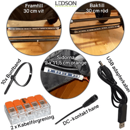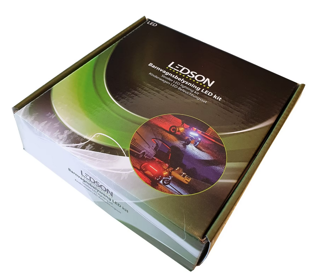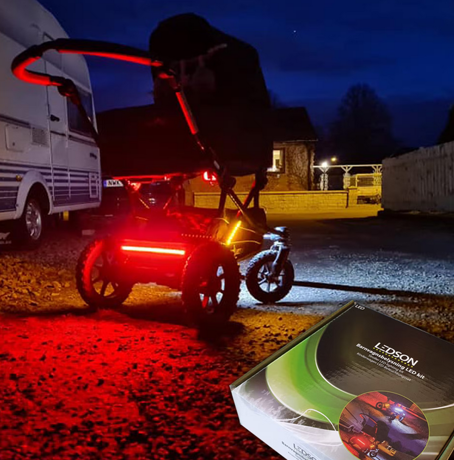 The Ledson stroller lighting set is a complete solution to illuminate your stroller. With this set, you are highly visible and can also look around in the dark. The LED strips are fully waterproof thanks to the IP68 rating.