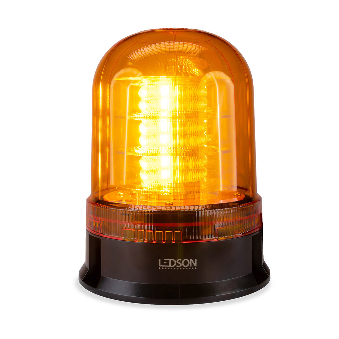 The Ledson Warning Light Rotating LED 36W enhances road safety. It features four ECE R65-approved light patterns and is easy to install. The robust design with IP67 rating ensures durability under harsh conditions. Benefits include improved visibility and reliability. Dimensions and details: compact size, suitable for various vehicles, and resistant to dust and water.