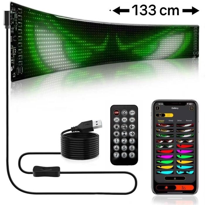 Ultra-thin, flexible, and self-adhesive – give your truck or vehicle a cool, personal look with this programmable LED panel! Easy to install and connect. Customize it as you like, with your own texts, graphics, or animations. Perfect for your truck window, but also great for home use thanks to the USB connection and the extra-long cable of 440 cm. Recommended adapter: 2A output.