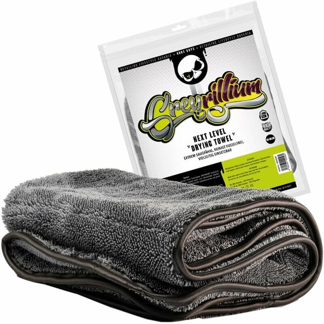 The Nuke Guys Grey Rillium Auto drying towel is a microfiber cloth perfect for drying, cleaning, polishing, waxing, and sealing your truck. This cloth has a long, soft, and non-slip structure that ensures effective and safe cleaning.