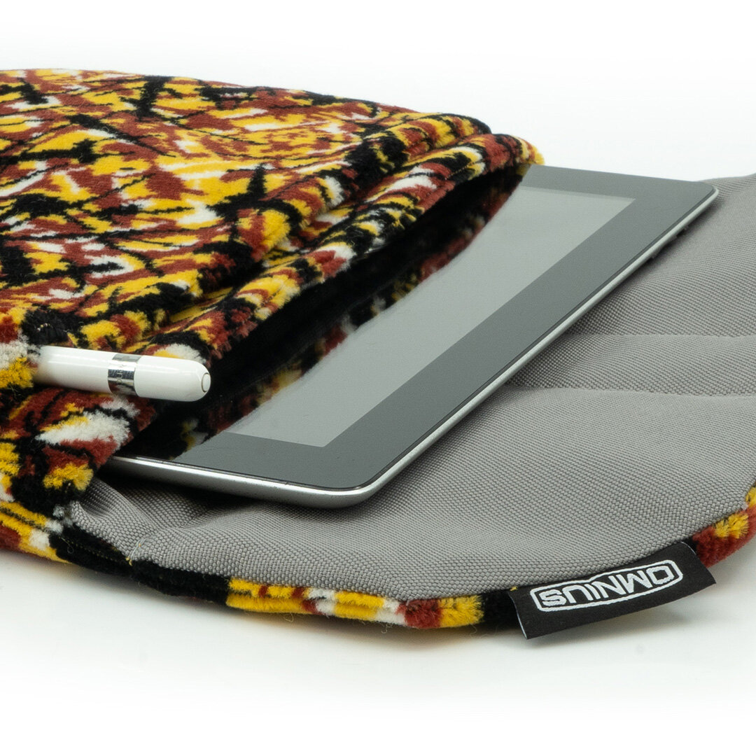 Protect your tablet with the Omnius tablet case, a stylish and functional choice for daily use. This handmade case is crafted in yellow plush and features a practical clip closure. The soft interior prevents scratches, while the sturdy exterior offers extra protection.