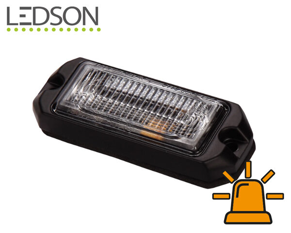 Ledson Warning Flash Lamp Surface Mount 7mm Multivolt 10-30V Shock Resistant IP68 18W 20 Flash Patterns 118x25x7mm