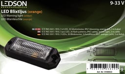 This orange warning strobe light is equipped with 3 LEDs and offers 26 different flash patterns. It complies with the ECE R65 and EMC R10 standards and has an IP67 rating, meaning it is dust and waterproof. It operates on a voltage of 9-33V and comes with a 3-meter long cable. This strobe light is ideal for use in various weather conditions and ensures optimal visibility and safety on the road.