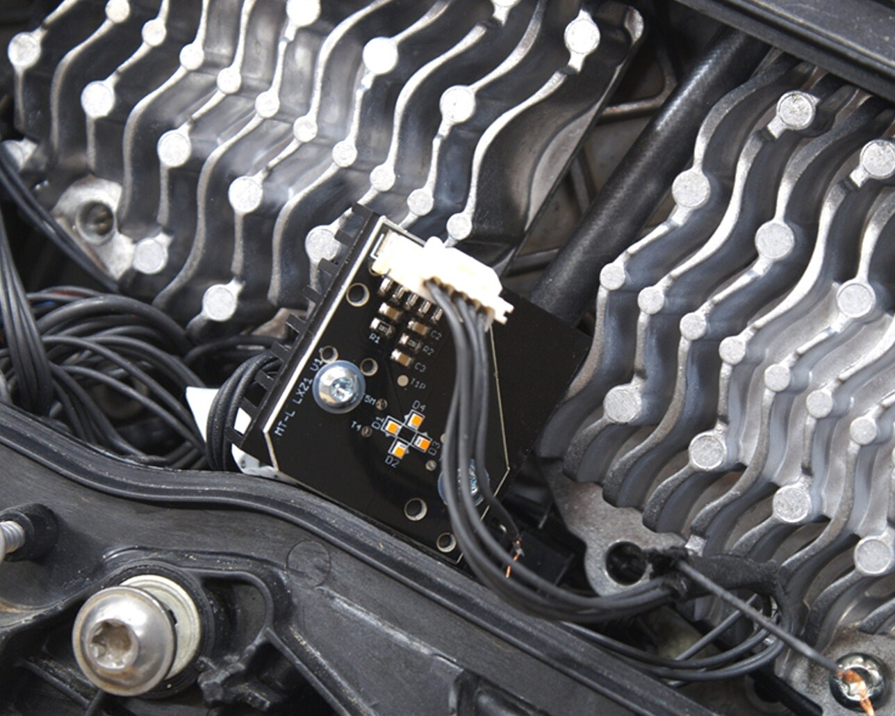 - Mount the dual-color circuit board on the original heat sink and route the cable through a cable gland on the outside of the lamp. Split the appropriate wires back into the lamp.