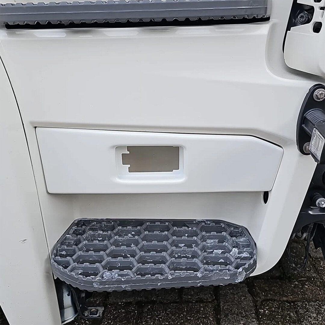 Change the appearance of your Scania NGS with these unpainted step lamp holders for an R/Streamline look. These lamp holders are exclusive of lamps and offer a stylish upgrade. They are easy to install and fit perfectly on your truck. The dimensions are tailored to the Scania NGS, ensuring seamless integration. Ideal for those who want to give their truck a personal touch without too much effort.