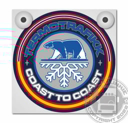 The TERMOTRAFIKK Coast To Coast front plate set of 18x18 cm offers a stylish design and high-quality lighting. These handmade light boxes from the Netherlands are equipped with suction cups for easy attachment. The set combines aesthetics with functionality, ideal for truck styling. Dimensions: 18x18 cm.