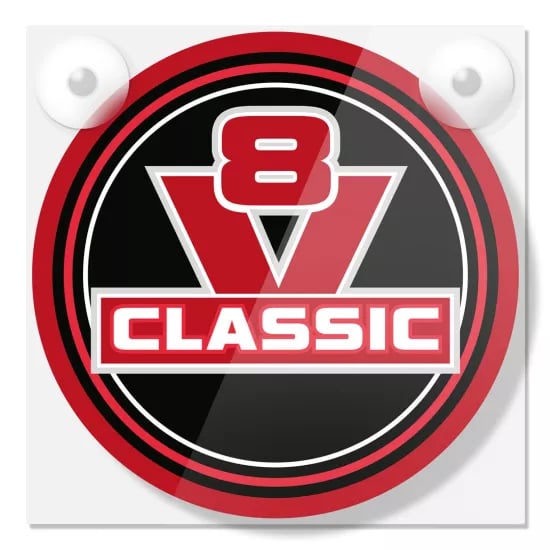 V8 Classic Red Light Box Deluxe Complete 18x18cm - 24V OR 12V - LED (WARM WHITE) - STYLISHLY COVERED - INCL. 2m DOUBLE INSULATED CABLE - OWN PRODUCTION! Delivered without cigarette lighter. The highest quality, the best design, and the most beautiful light! Our light boxes set a new standard. Because the print is placed on the inside of the acrylic plate, it provides a very stylish illumination and gives a luxurious appearance with a gloss over the image. It has a full and even lighting over the entire image, unlike the cheaper versions that are only illuminated from the center. Standard delivery time: 1-2 WEEKS ! No warranty is given against burning out on the 12V version. The displayed logos and/or trademarks are for indication purposes only. They are not original and do not indicate that the product is made and/or approved by the brand owner. They only indicate that the product is suitable for a particular brand vehicle.