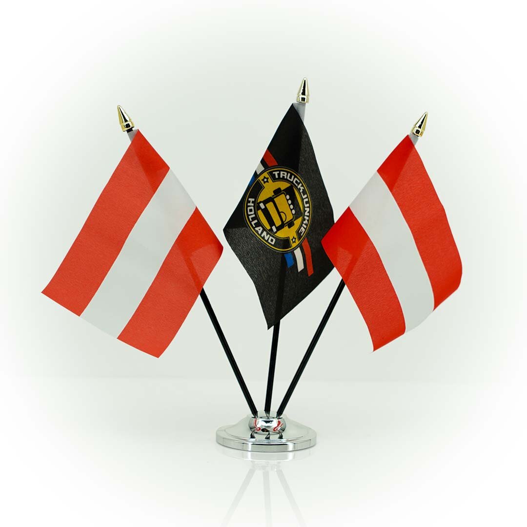 Le drapeau FLAG-AT est conçu pour le style des camions et offre une apparence élégante. Le drapeau mesure 10 x 15 cm et est doté d'un support en plastique noir avec un mât de couleur or. Cette combinaison garantit une présentation élégante et durable. Les dimensions compactes le rendent idéal pour une utilisation dans des espaces restreints, tandis que les matériaux de haute qualité assurent une longue durée de vie.
