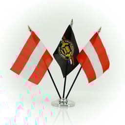La combinaison du support noir et de la tête de mât dorée offre une finition élégante et durable. Ce drapeau est idéal pour une utilisation dans la cabine et offre une décoration compacte et frappante. Avec ses dimensions modestes, il s'adapte facilement à tout espace sans être envahissant, tout en ajoutant un accent frappant.