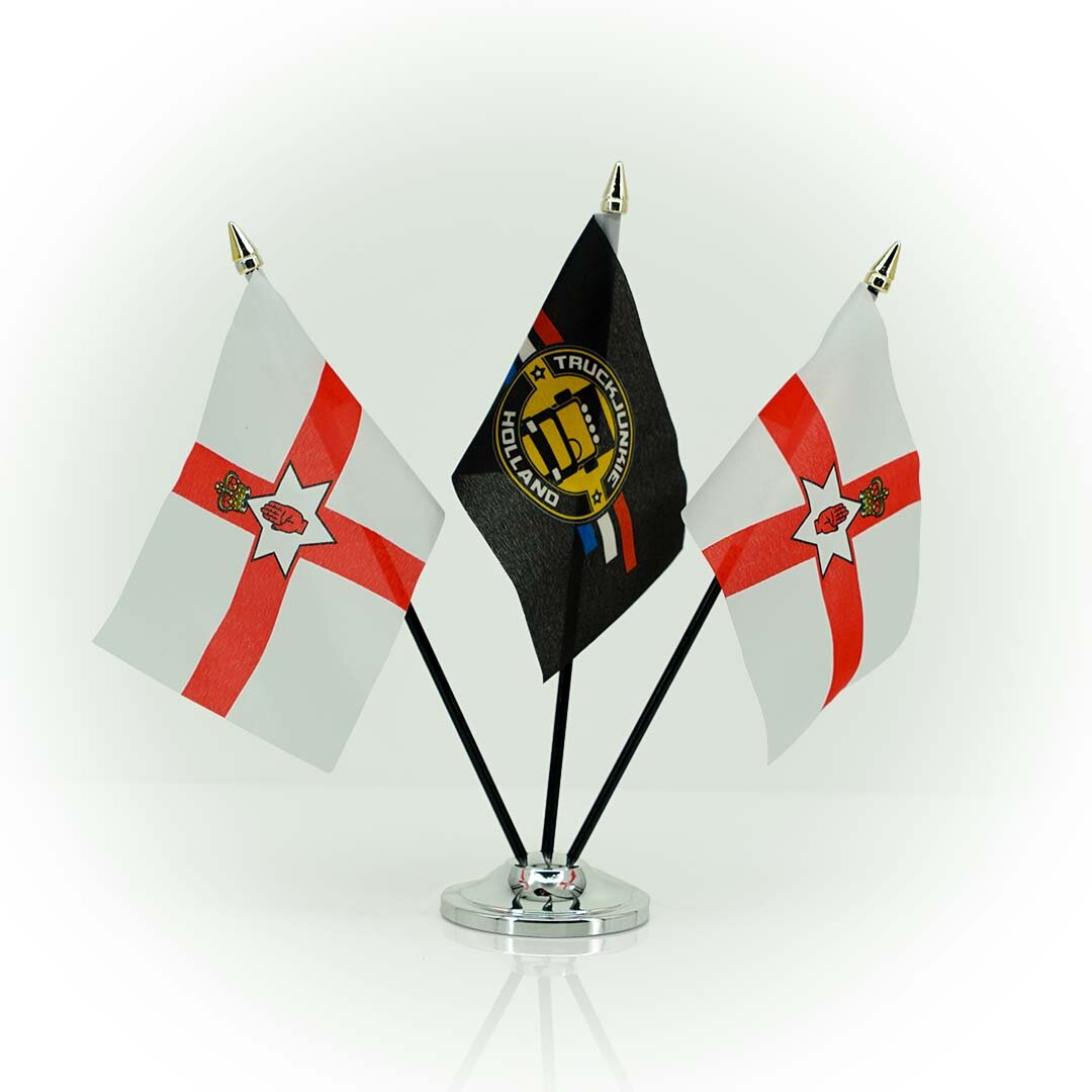 Le drapeau FLAG-NI est un ajout compact et élégant à tout camion. Le drapeau mesure 10 x 15 cm et est doté d'un support en plastique noir avec un mât de couleur or. Cette combinaison offre une apparence élégante. Le drapeau est facile à monter et offre une solution durable pour personnaliser votre véhicule. Idéal pour les camionneurs qui souhaitent embellir leur cabine avec une touche personnelle.