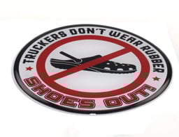 Cet autocollant avec le texte "LES ROUTIERS NE PORTENT PAS DE CAOUTCHOUC" est fabriqué à partir d'un film d'impression de haute qualité et a une finition 3D. L'autocollant a un diamètre de 7 cm et est conçu pour durer jusqu'à 5 ans. Idéal pour les routiers qui souhaitent personnaliser leur véhicule. Les matériaux durables garantissent une adhérence longue durée et une apparence frappante.