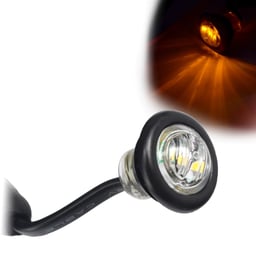 Lampada laterale rotonda con vetro trasparente, progettata per l'emissione di luce arancione. Diametro di 28mm. Questa lampada offre un'illuminazione chiara e appariscente, ideale per la marcatura laterale sui camion. Il formato compatto consente un'installazione semplice. Adatta a diverse condizioni meteorologiche e garantisce una migliore visibilità e sicurezza sulla strada.
