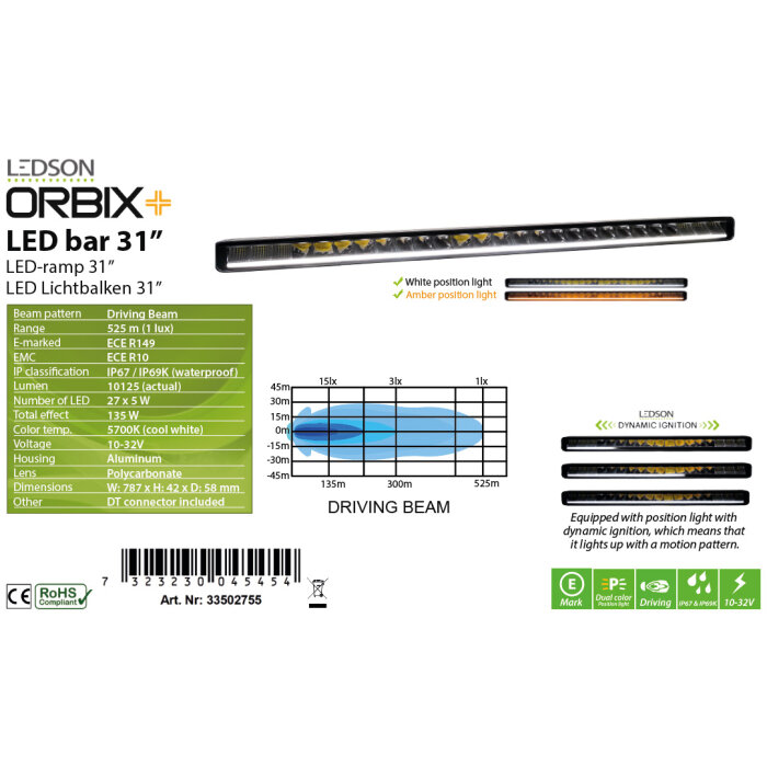 Ledson Orbix31+ LED Bar Luce di Posizione Dinamica 787mm 11340 Lumen 135W IP69K