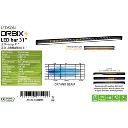 La barra LED Ledson Orbix31+ offre una luce di posizione dinamica che può facilmente passare da bianco ad ambra. Con una lunghezza di 787 mm, questa barra luminosa fornisce 11340 lumen e ha una potenza di 135W. La classificazione IP69K garantisce un'eccellente resistenza all'acqua e alla polvere. I vantaggi includono la versatilità nella scelta dei colori e la costruzione robusta. Ideale per lo styling dei camion e una visibilità extra.
