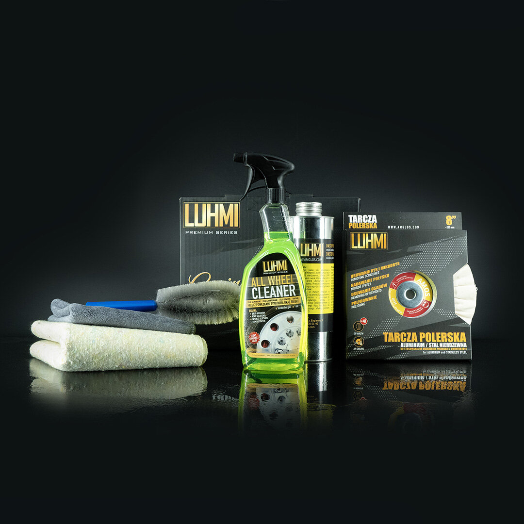 Set LUHMI per la Cura delle Ruote con Kit di Lucidatura in 1 Passaggio, Detergente per Ruote e Spazzola per Cerchioni
