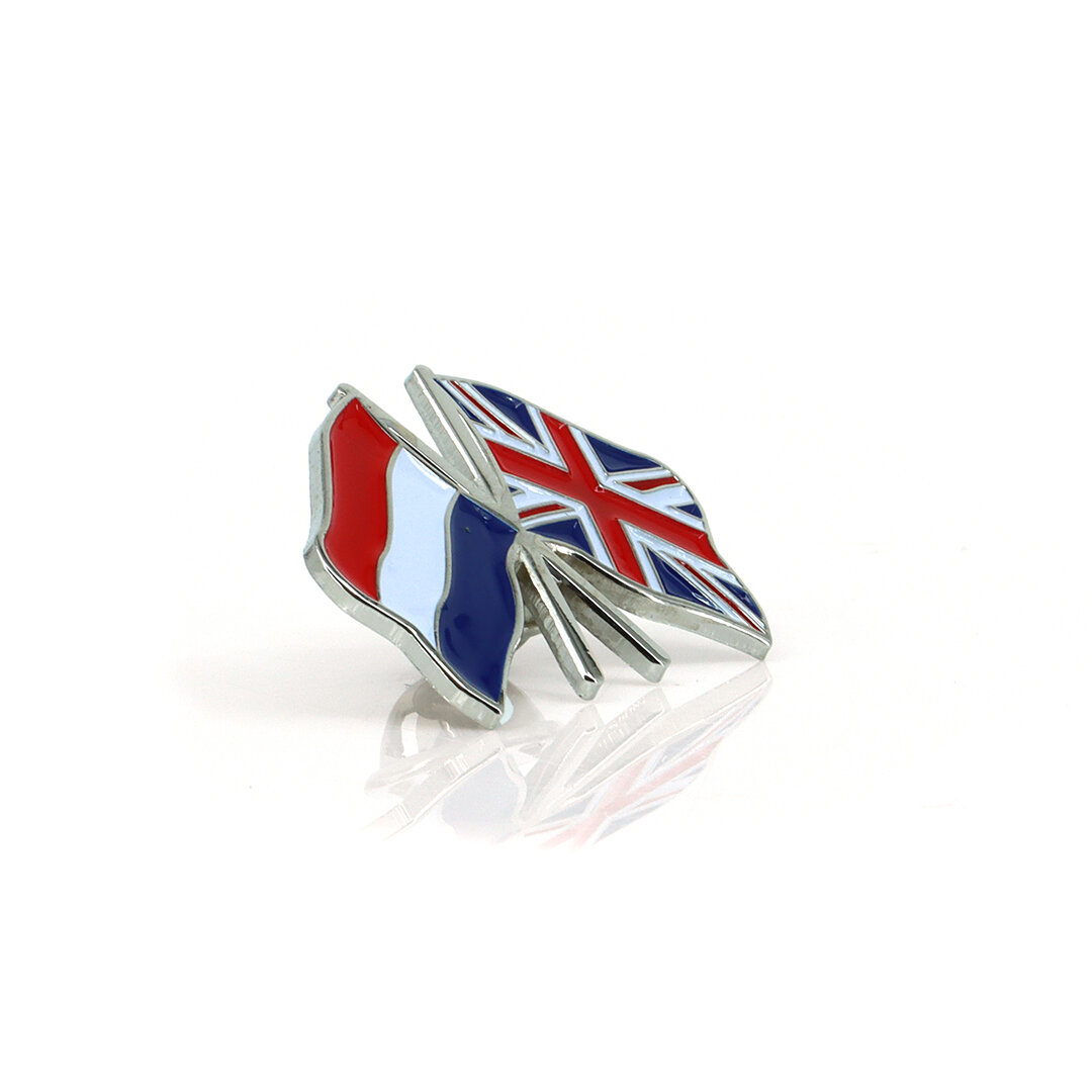 Questo spillo color argento è un ottimo modo per mostrare dove si trova il tuo cuore. Combina le bandiere dei Paesi Bassi e della Gran Bretagna ed è appositamente progettato per lo styling dei camion e l'espressione personale. Lo spillo è realizzato in materiale robusto e ha un occhio per i dettagli, rendendolo sia durevole che elegante.