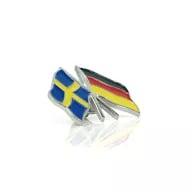 Questa robusta spilla color argento mostra le bandiere di Svezia e Germania. La spilla è durevole ed elegante, ideale per gli appassionati di styling per camion. Con una dimensione di 3x2,2 cm è un accessorio sottile ma sorprendente. Perfetto per mostrare il tuo stile personale e dare al tuo veicolo un aspetto unico.