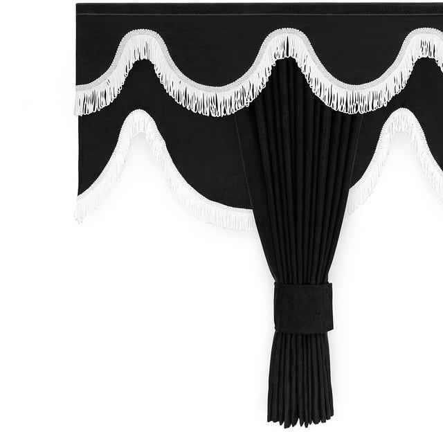 Alcantara Gordijnset Truck Zwart Wit Franjes 90cm 225cm 185cm