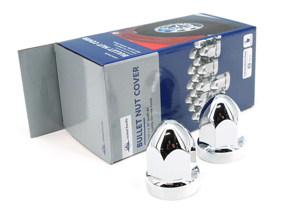 Dit wielaccessoire van verchroomd kunststof komt uit de USA. Met een diameter van 33 mm en een hoogte van 70 mm, is het perfect om je truckwielen een unieke look te geven. De chroomlaag geeft een glanzende finish en helpt tegen slijtage. Het past op verschillende truckmodellen en is makkelijk te monteren.