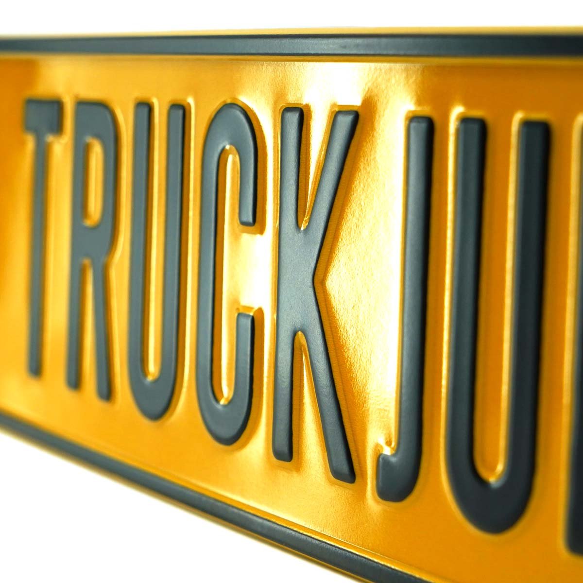 Deze kentekenplaat van 52 x 11 cm laat je je eigen tekst toevoegen. Met een opvallende gele achtergrond is hij perfect om je truck of voertuig te personaliseren. De afmetingen zorgen ervoor dat hij goed zichtbaar is, en de stevige materialen zorgen voor een lange levensduur. Geschikt voor verschillende toepassingen en makkelijk te monteren.