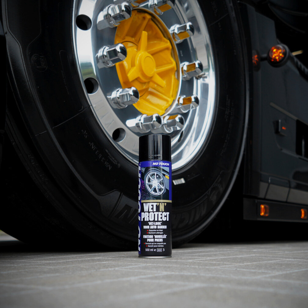 Voor echte fans van styling: upgrade jouw banden met de No Touch Bandenzwart Wet 'n' Protect Wet Look Spray 500 ml en laat je banden stralen!