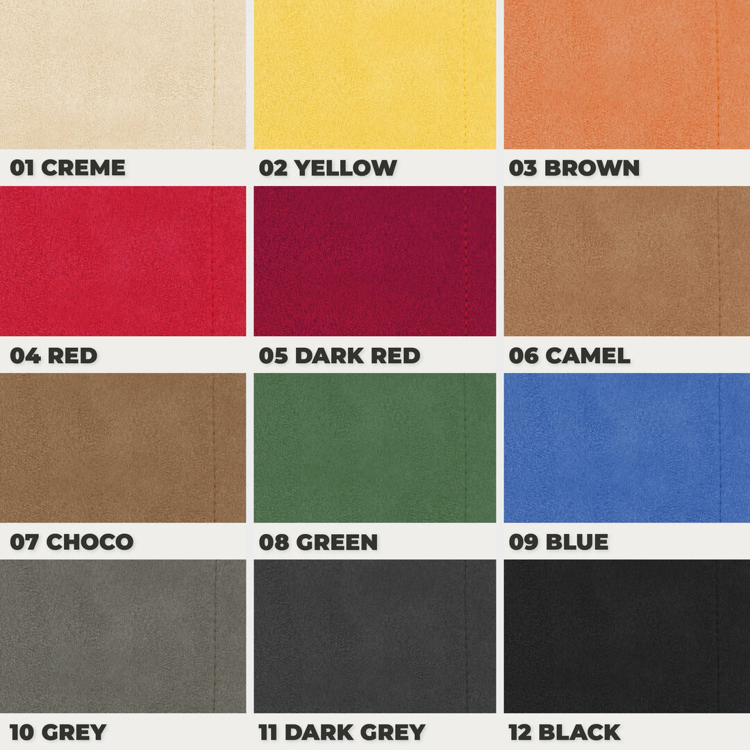 - Alcantara-look stof (voor- en achterkant), Deense pluche (voorkant)